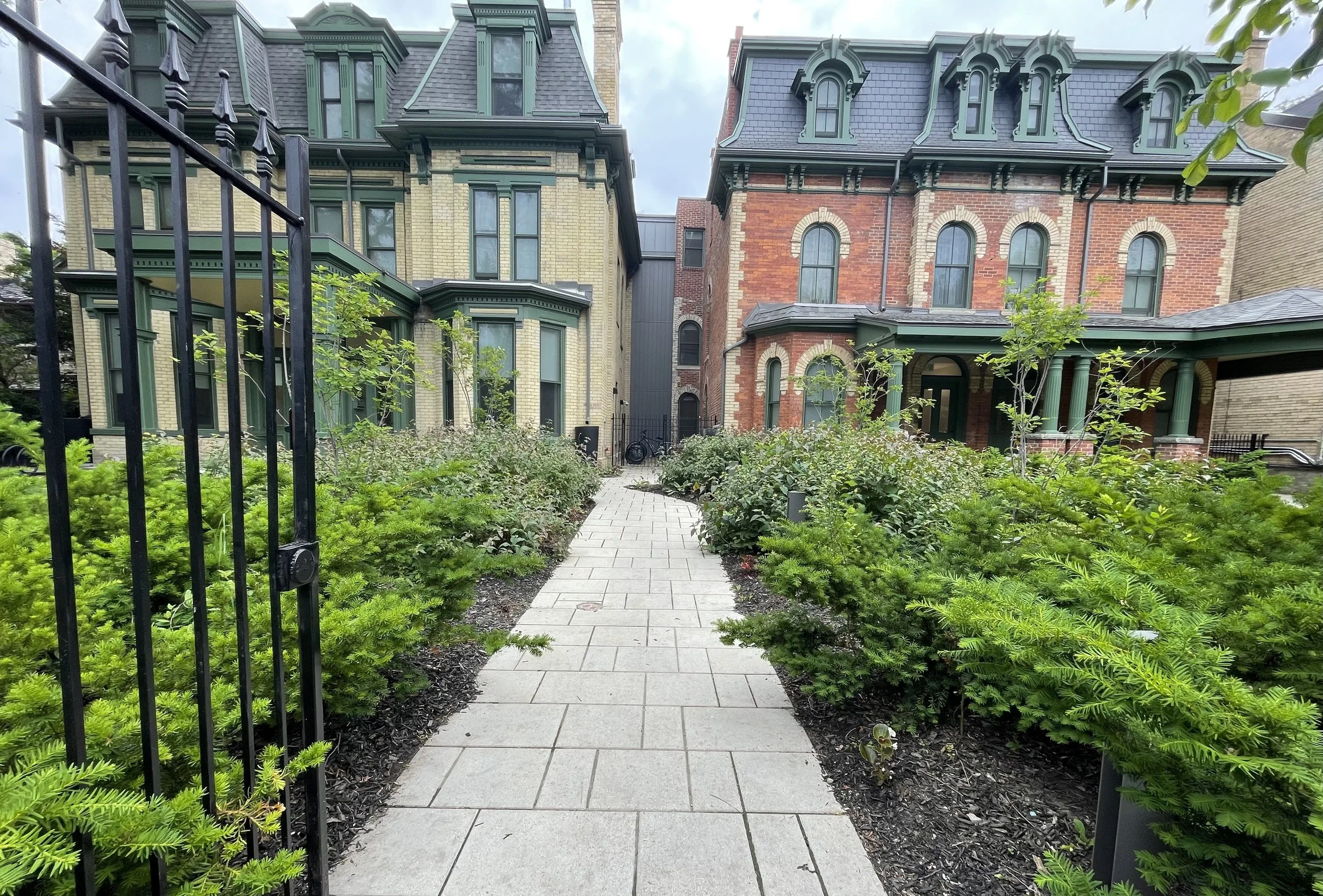 Margaret’s House provides supportive housing and community support for at-risk homeless individuals living with mental illness challenges. The Winchester Street location offers 35 permanent, self-contained dwelling units housed in Heritage designated buildings in Cabbagetown. Surrounded by a mix of canopy trees, understory trees and shrub plantings, the backyard is designed to provide a range of safe and semi-private spaces for residents to be immersed in a diverse natural environment. Vegetable planters in the front yard offer an opportunity to connect with the community.